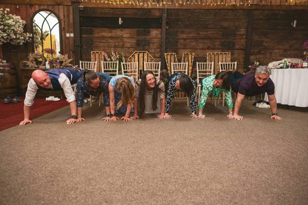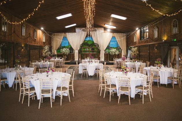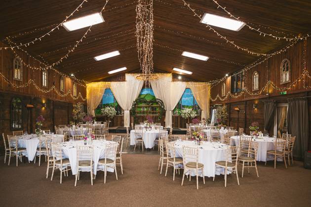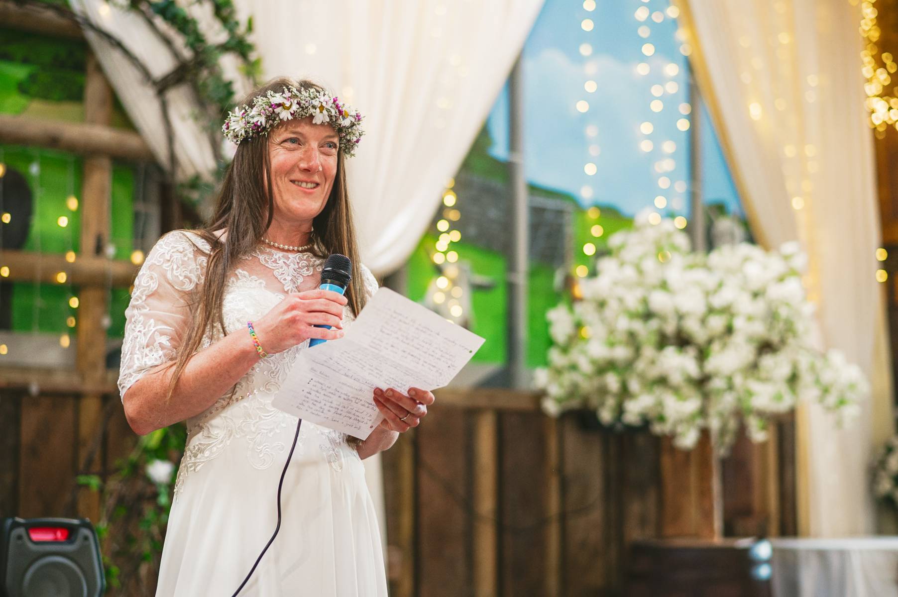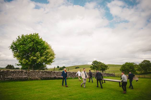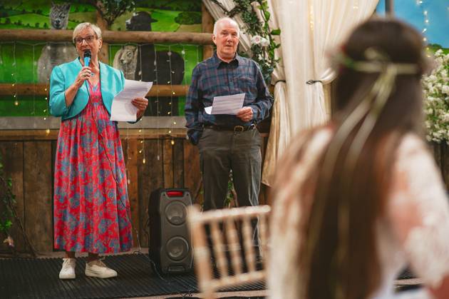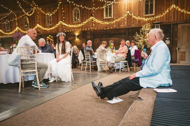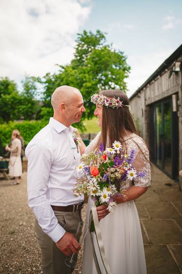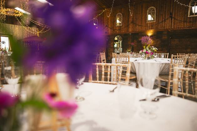 Celebratory reception drinks and hugs were held in the barn, whilst the wedding couple took a stroll around the venue's grounds for some photos. It was then onto MC Jon (every wedding should have an MC Jon) to shake the Swiss Cow Bell and call everyone in for the wedding breakfast and speeches.